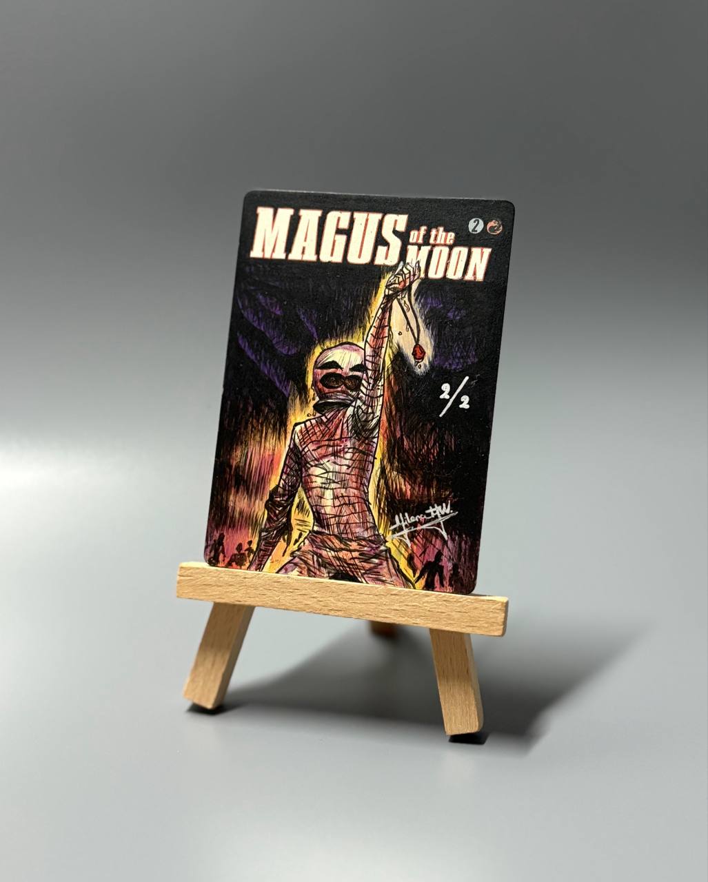 Работа выполнена акрилом с лаковым покрытием, карта к протектору не прилипает, в протекторах никак не ощущается, слой краски очень тонкий.