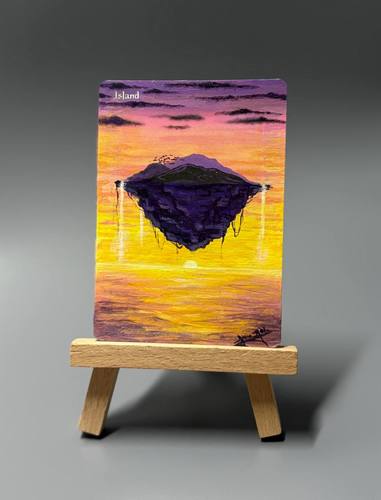 Работа выполнена акрилом с лаковым покрытием, карта к протектору не прилипает, в протекторах никак не ощущается, слой краски очень тонкий.