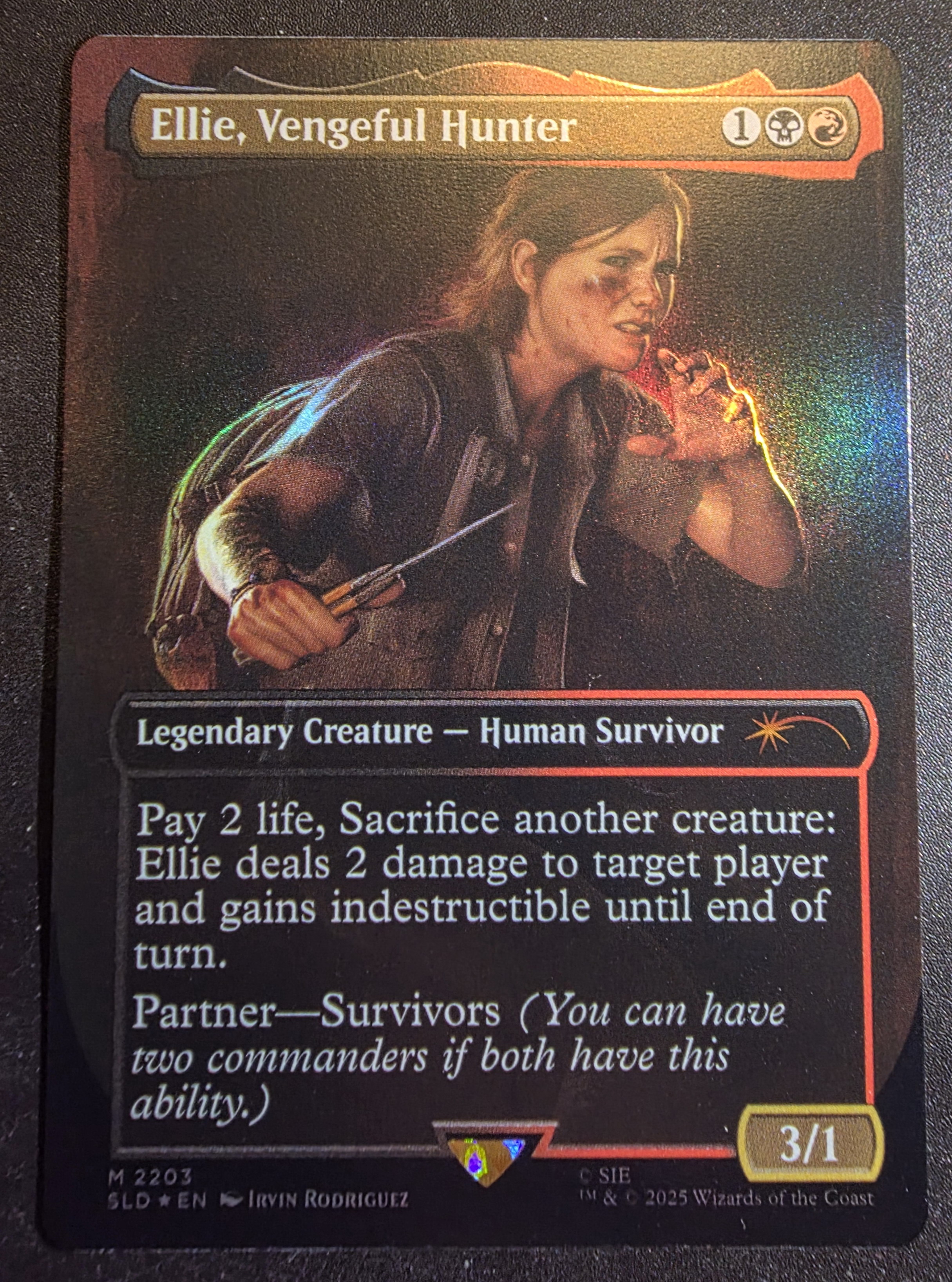Фойловая карта Ellie, Vengeful Hunter из набора Secret Lair x The Last of Us Part II. Карта в отличном состоянии.