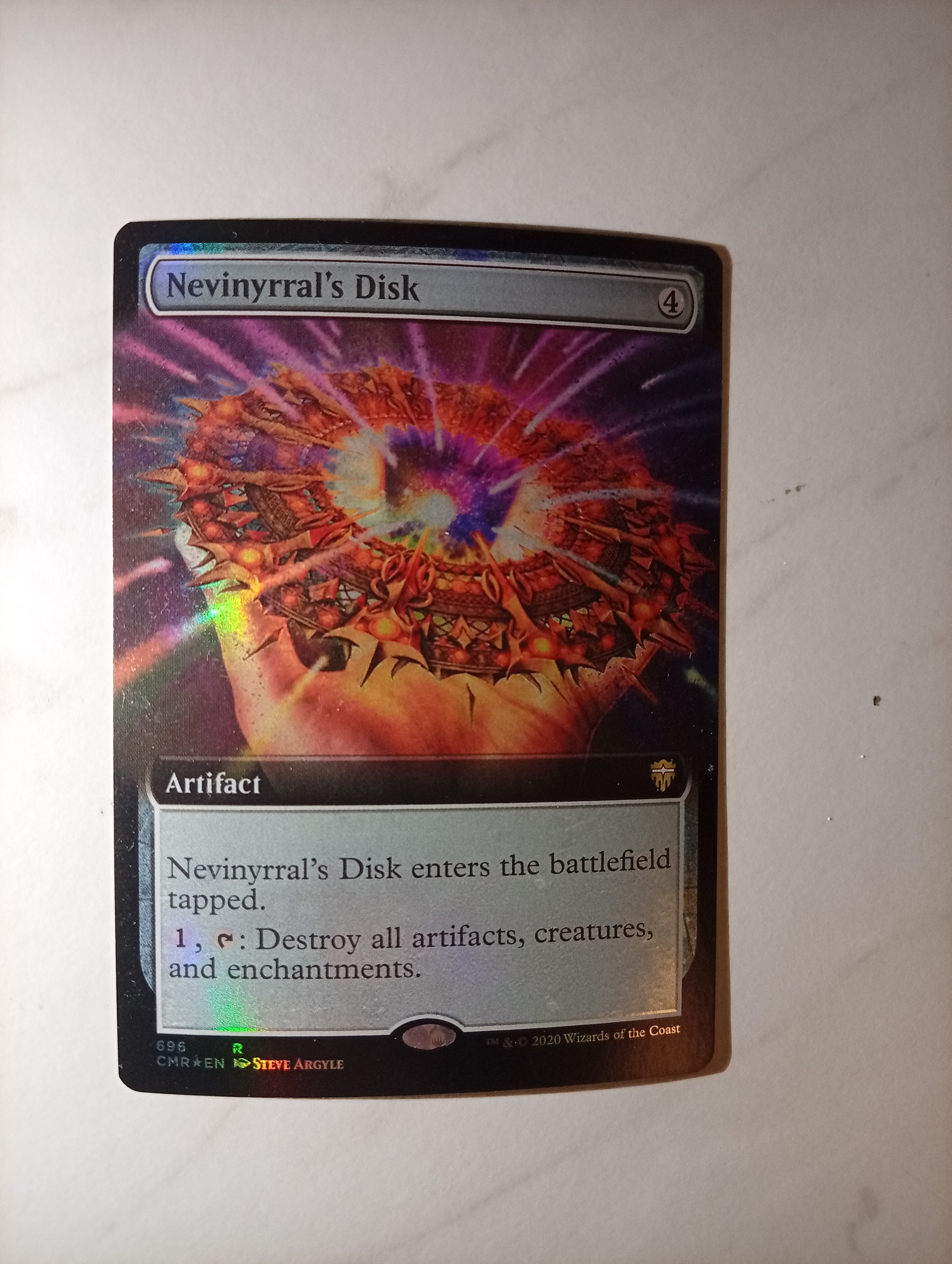 Продам FOIL Extended Art Nevinyrral's Disk из Commander Legend. Карта попала из бустера в альбом и не видела ни одной партии.