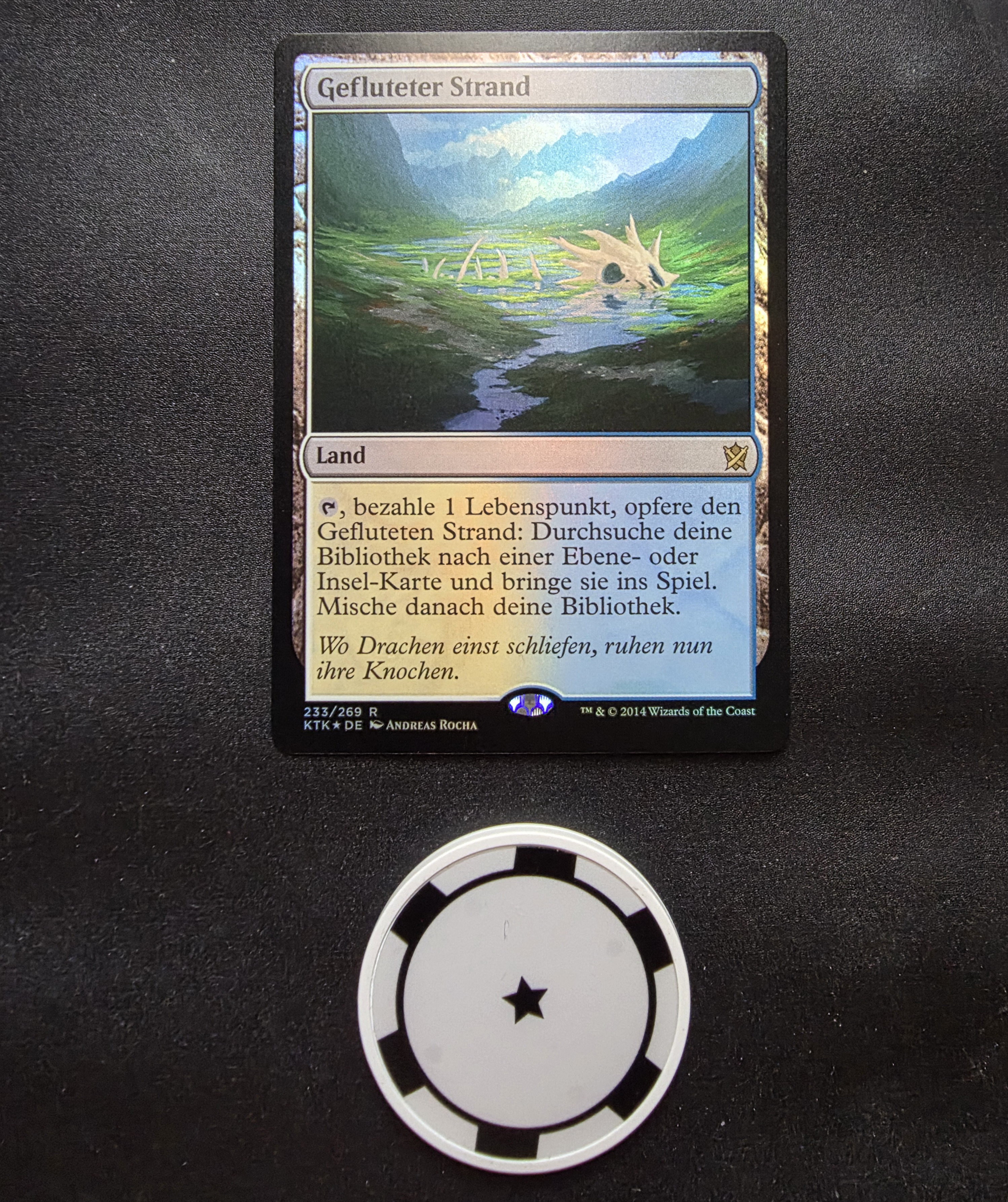 Фойловая карта Flooded Strand на немецком языке из выпуска Khans of Tarkir. Карта в отличном состоянии.