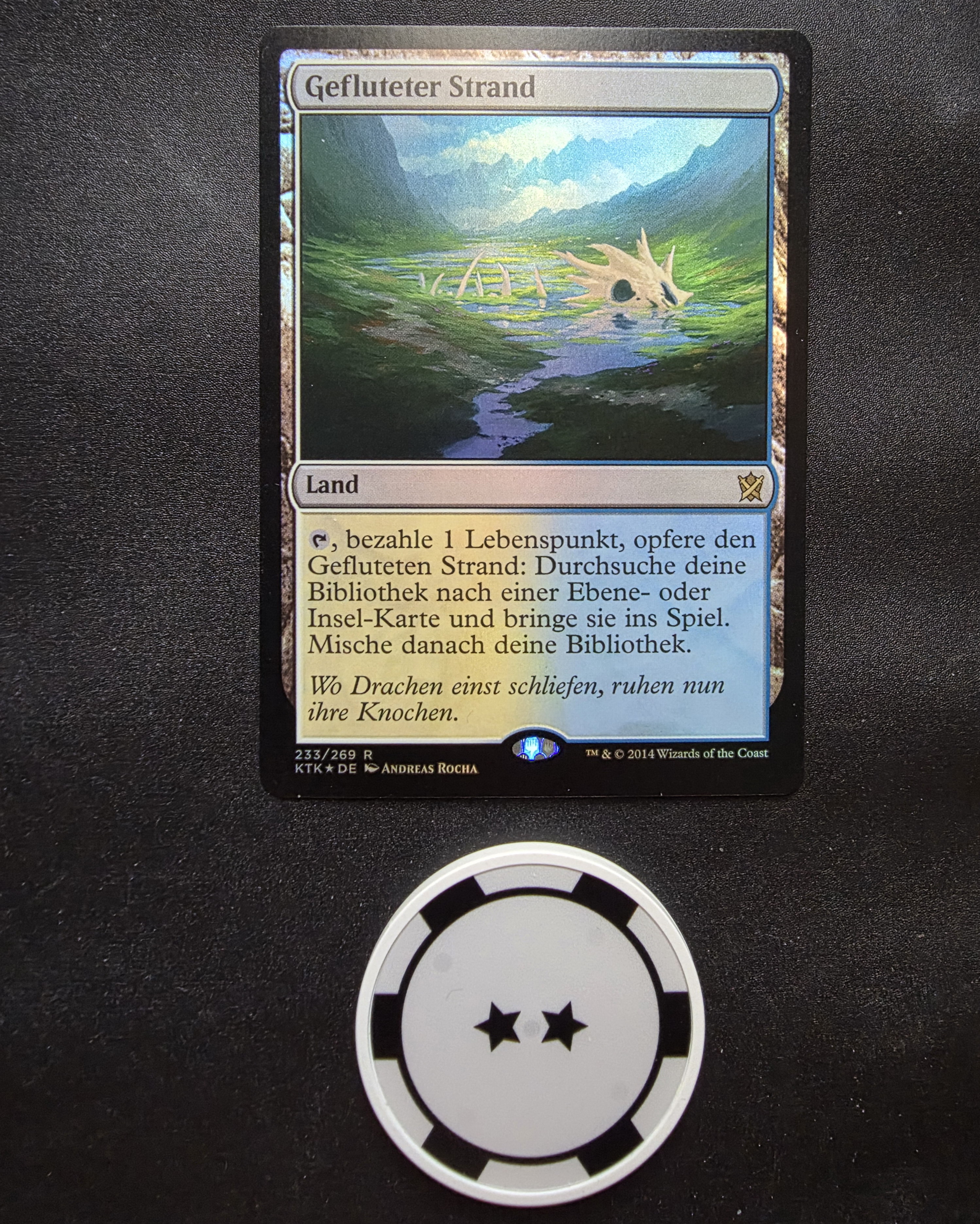 Фойловая карта Flooded Strand на немецком языке из выпуска Khans of Tarkir. Карта в отличном состоянии.