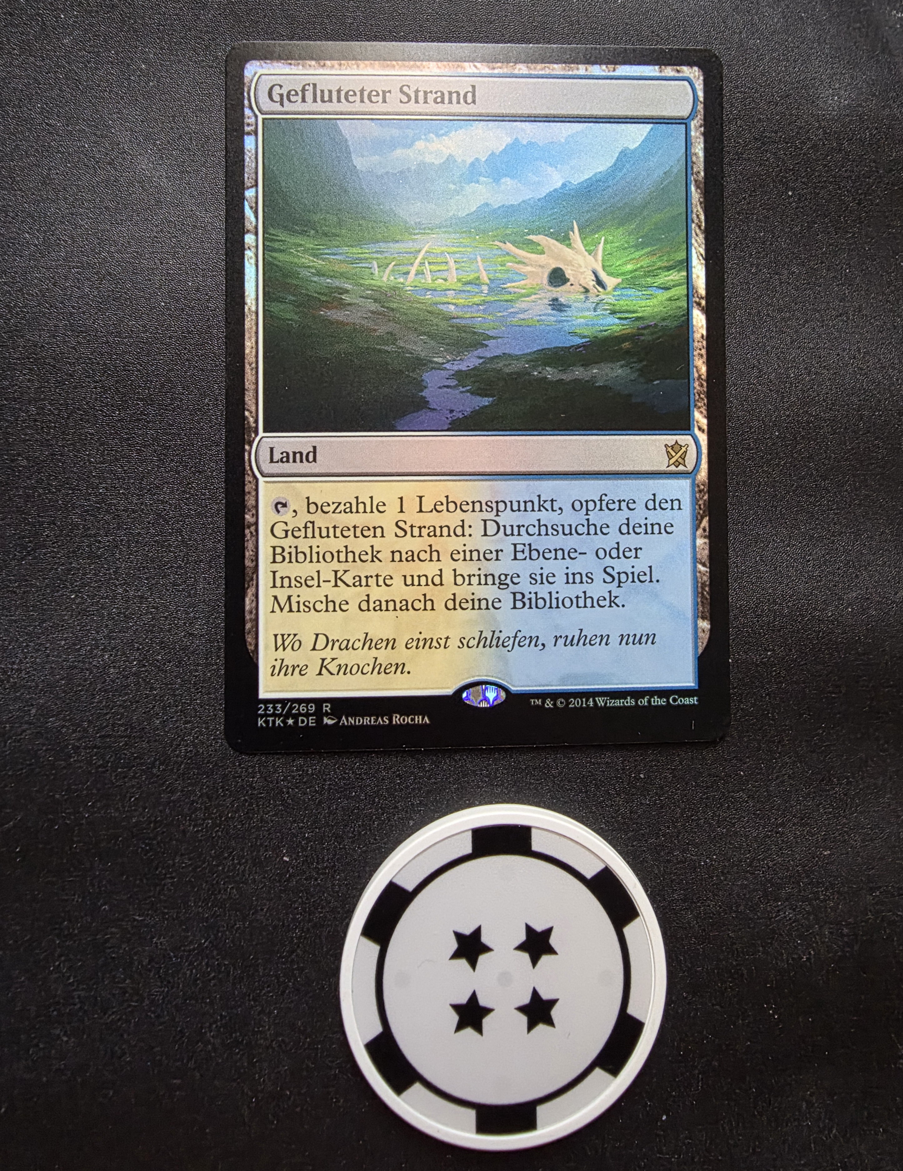Фойловая карта Flooded Strand на немецком языке из выпуска Khans of Tarkir. Карта в хорошем состоянии состоянии.