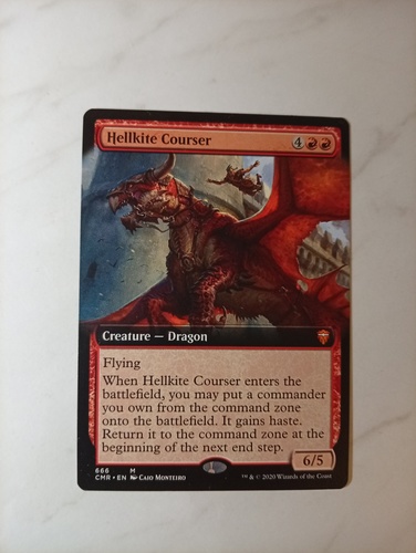 Продам Hellkite Courser Extended Art из Commander Legends. Карта попала из бустера в альбом и не видела ни одной партии.