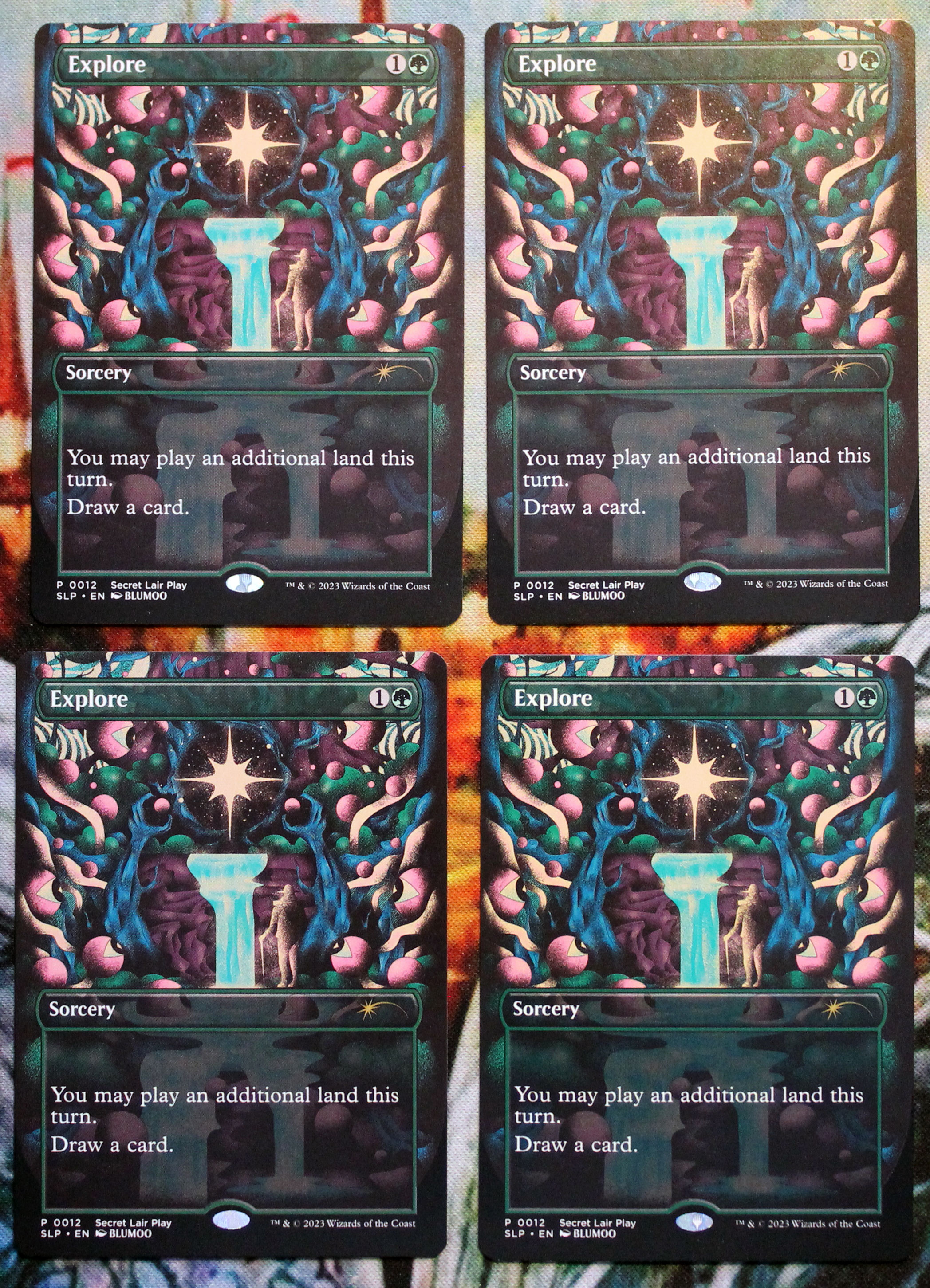 Комплект промочных Explore с Secret Lair Premier Play. Карты новые, не игрались, хранились в протекторах.