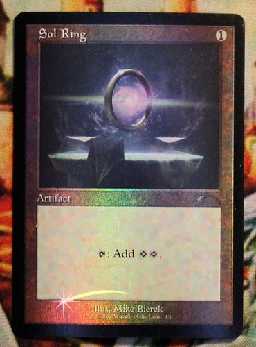 Ретробордерная фойловая промка Sol Ring, выпущенная в серии Love Your LGS 2022. Карта новая, не игралась, хранилась в протекторах.