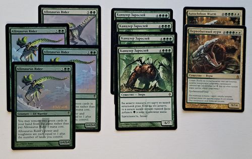 4 Allosaurus Rider CSP, английский, 3 Pre-release Foil (1 NM-, 2 SP), 1 NM из DD: Elves vs. Goblins