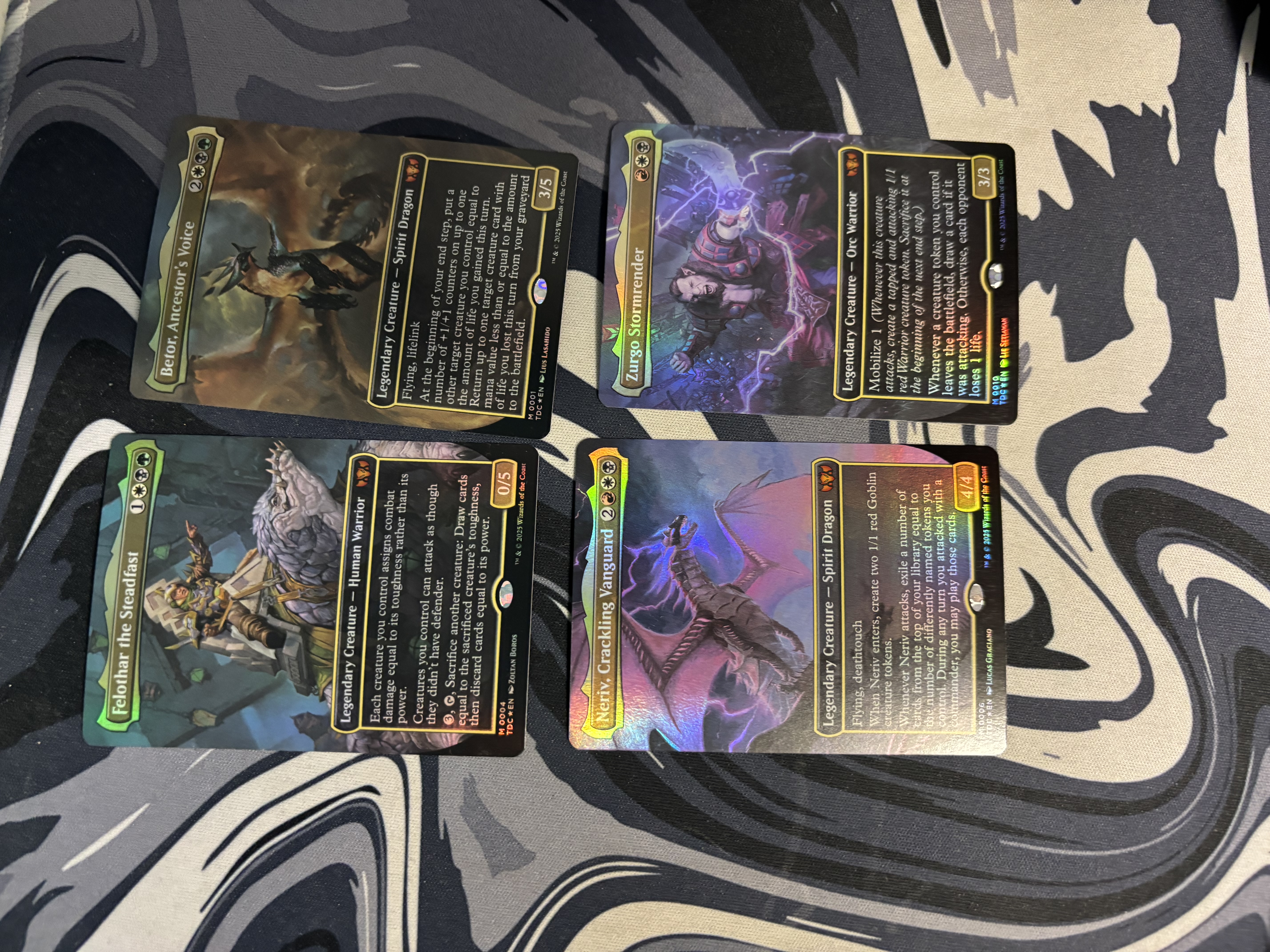 Betor, Ancestor's Voice 0001+ Felothar the Steadfast 0004 + Neriv, Crackling Vanguard 0006 + Zurgo Stormrender 0010 (Foil, Borderless, TDM)