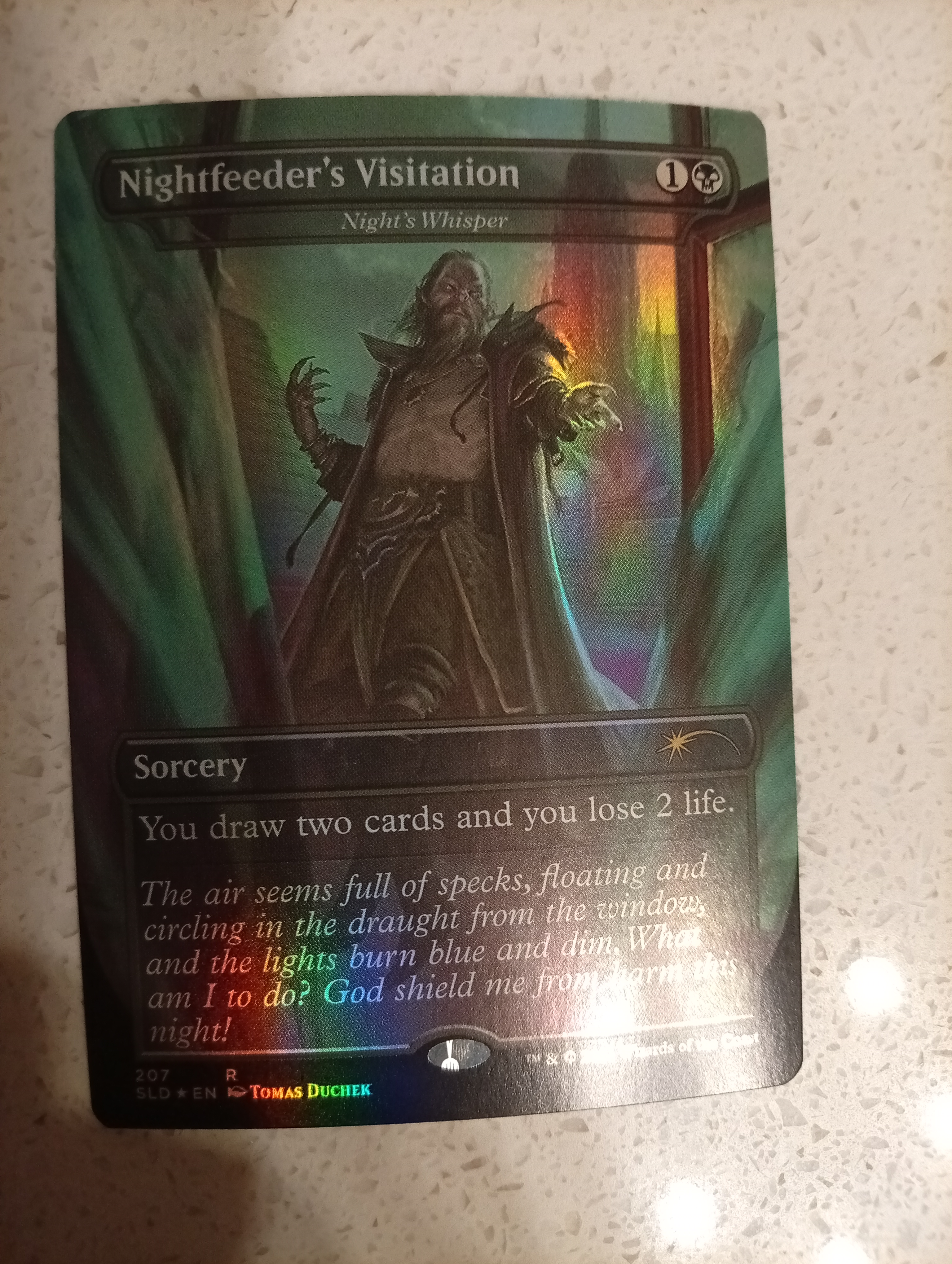 Продам FOIL Nightfeeder Visitation aka Night's Whisper из Secret Lair Dracula. Карта попала из набора в альбом и не видела ни одной партии.