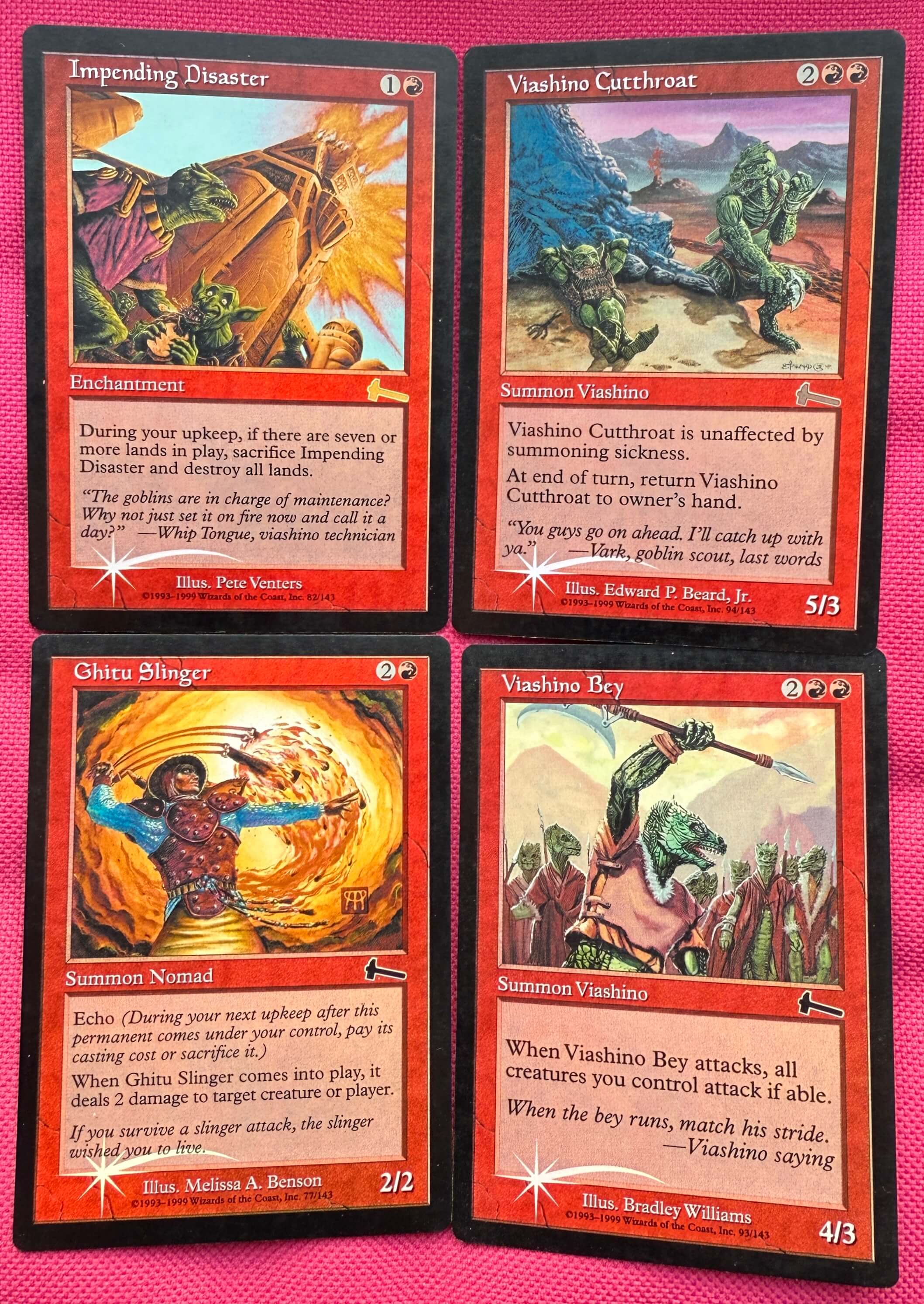 Четыре ретро фойловеньких красных карты из Урза’с Легаси на английском языке. Состояние немного поигранное. Ниже ссылки на доп. фотографии: