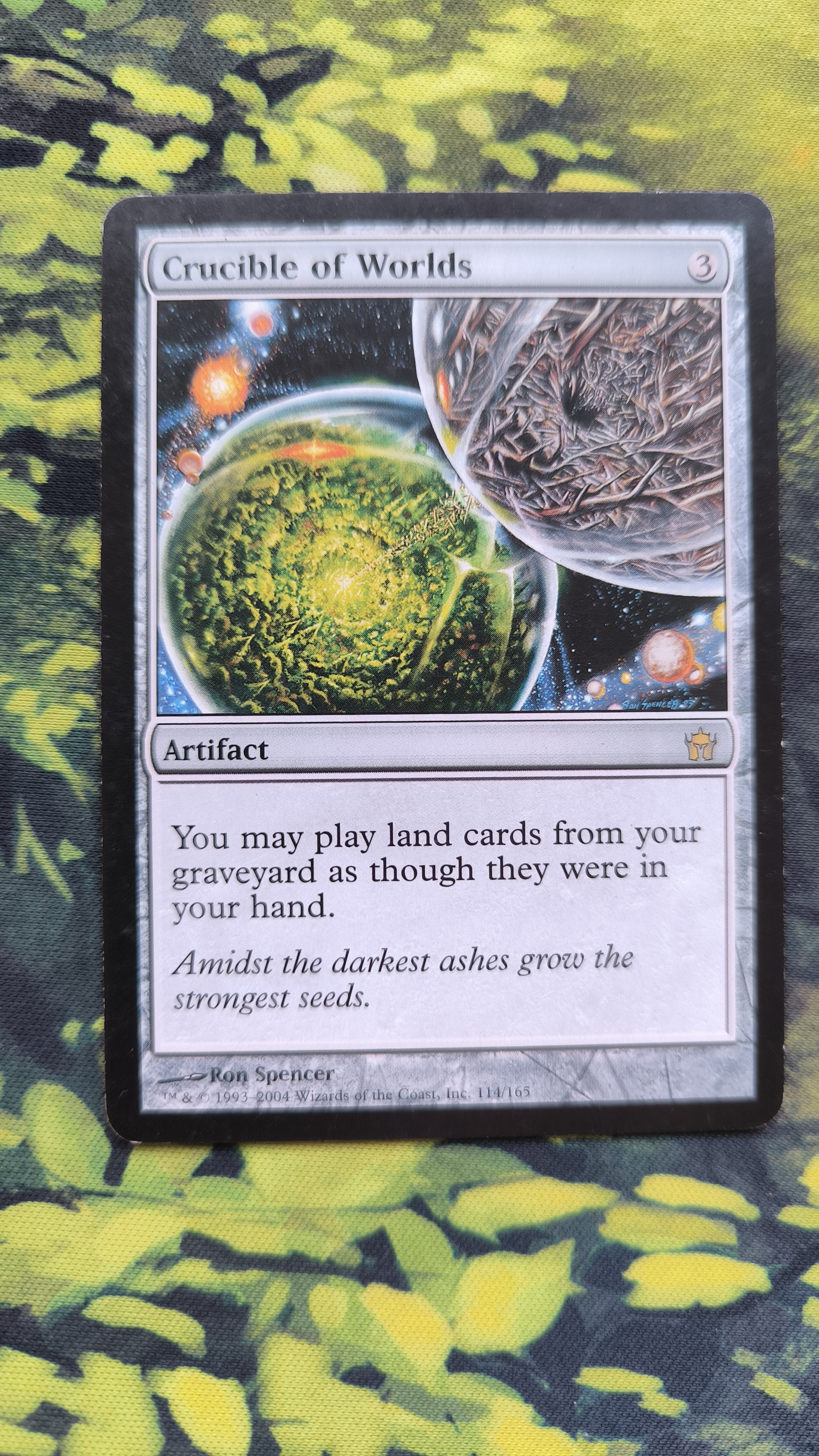 Родной крусибл, состояние неплохое. Видно, что несколько раз картой играли без протектора. За время у меня (с 2009 года) картой играли только в протекторе, а с 2013 года не играли вовсе