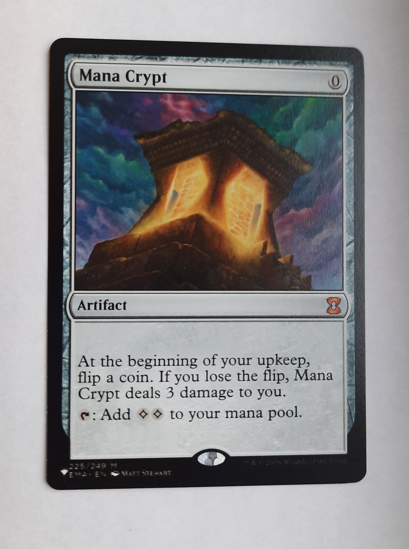 Mana Crypt из Mystery Booster. Легкий миспринт - внизу информация о художнике и коллекционном номере сильно размыта. Это оригинальная карта, лично вскрытая мной в бустере.