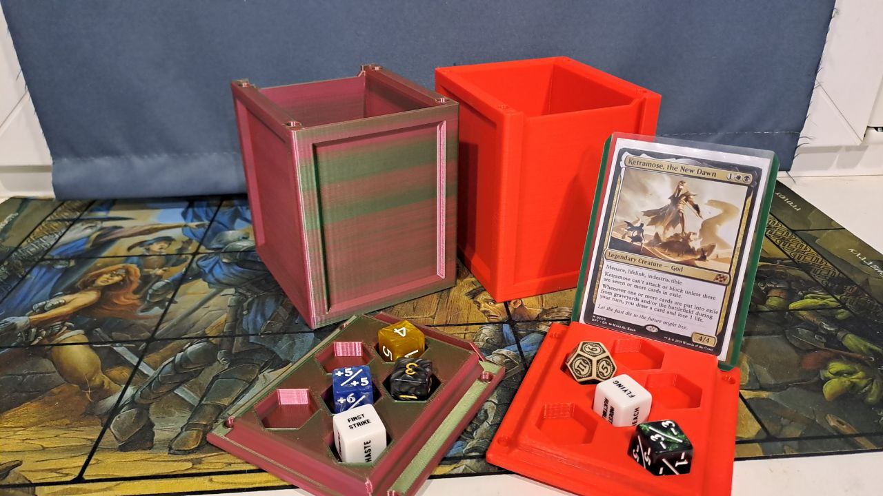 Декбокс из материала PLA: (красный, чёрный, белый) и PLA (красно-зелёный, чёрный).
