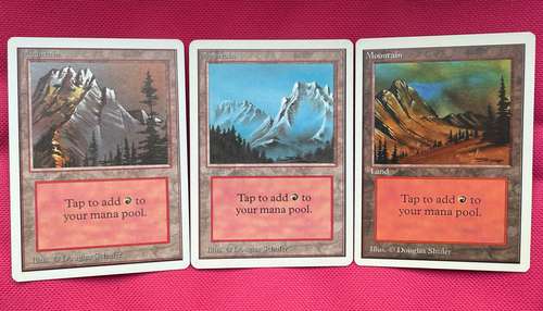 Три базовые Горы из Анлимитер с иллюстрациями Дугласа Шулера. Карты в прекрасном коллекционном состоянии. Ссылки на доп. фотографии: