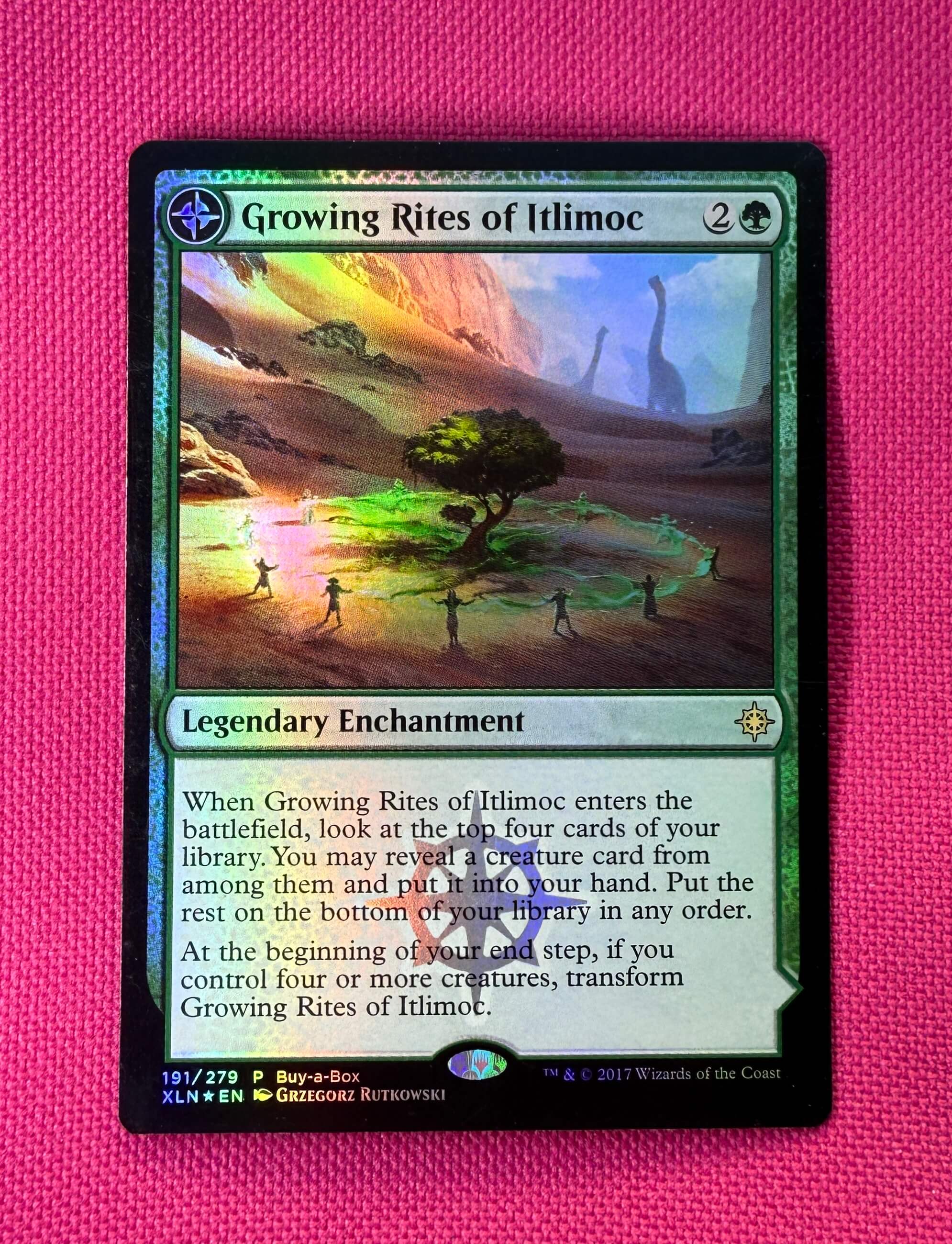 Двух сторонняя промо фойловенькая buy-a-box карта (гайка на минималках): Итлимокские Ритуалы Роста / Итлимок, Колыбель Солнца. Карта на английском языке, коллекционное состояние (покупалась в колоду, но так и не была задействована). Ссылки на доп. фотографии: