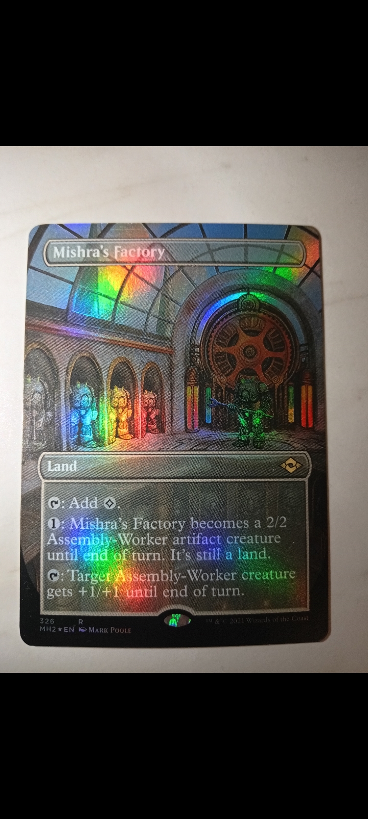Продам Foil Fullart "Mishra's Factory" из Modern Horizons 2. Карта попала и бустера в альбом и не видела ни одной партии.
