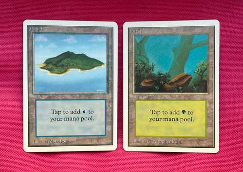 Две базовые земли из Анлимитед (Остров и Лес) в прекрасном коллекционном состоянии. Ссылки на доп. фотографии: