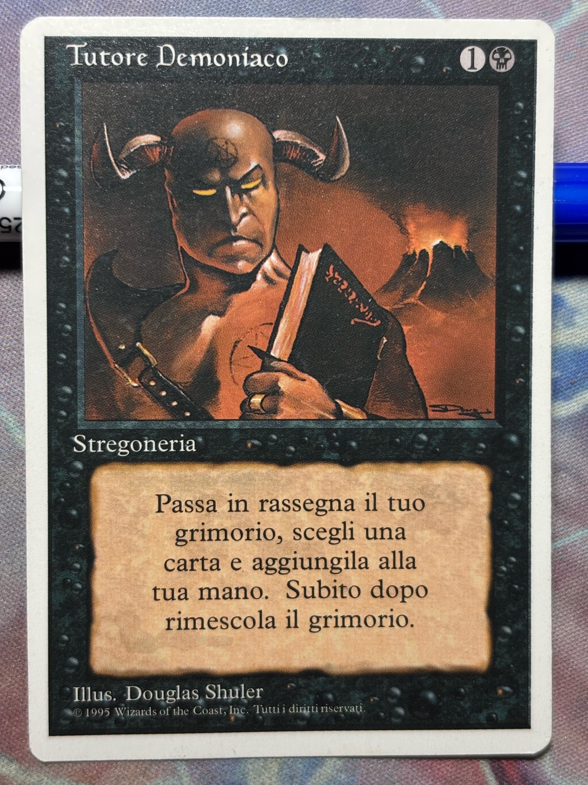 олдбордерный Демонис тутор на итальянском языке из сета Revised. Tutore Demoniaco. В целом, карта в неплохом состоянии, имеются разные потёртости и царапки. Но пускай будет мп на всякий случай. Карта принесла много побед и нужных карт. Заряжена на успех. за доп.фото - в личку