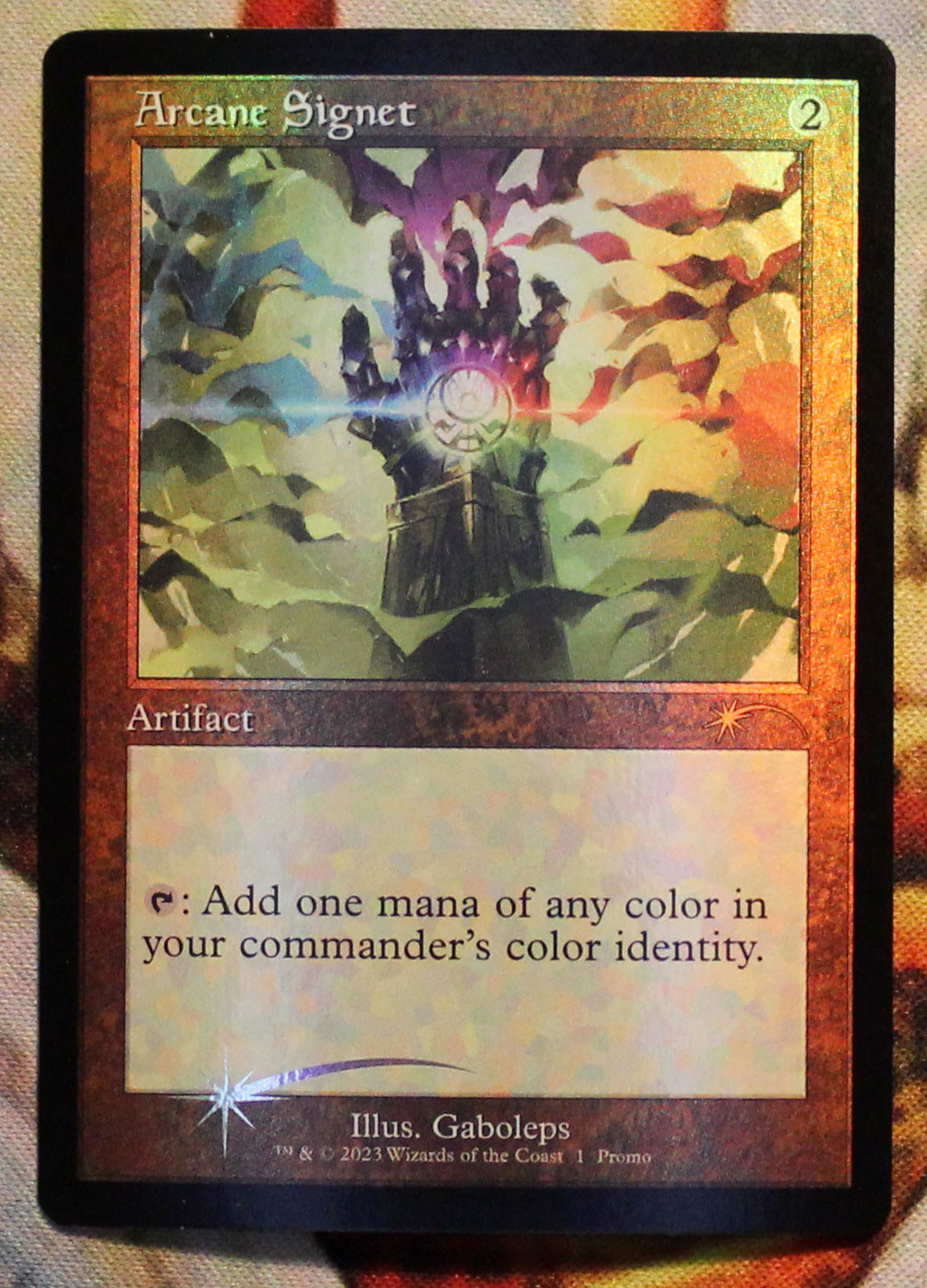 Ретробордерная фойловая промка Arcane Signet, выпущенная к 30-летию Магии. Карта новая, не игралась, хранилась в протекторах.