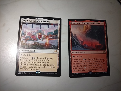 Продам Eiganjo, Seat of the Empire и Sokenzan, Crucible of Defiance из Kamigawa Neon Dynasty. Карты попали из бустеров в альбом и не видели ни одной партии.