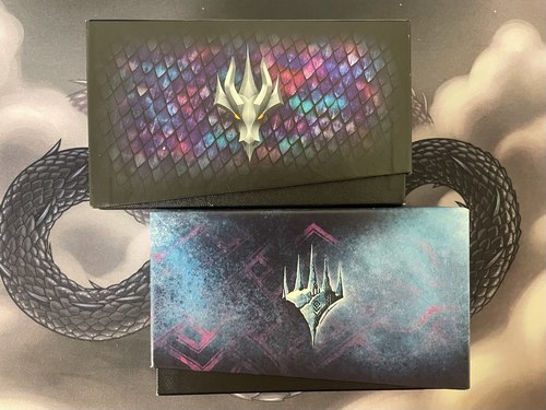 Две коробки бандлов, полностью забитые комонками и анкомонками следующих сетов: KHM, AFR, MID, DMR, VOW, а также примерно 100 карт других сетов.