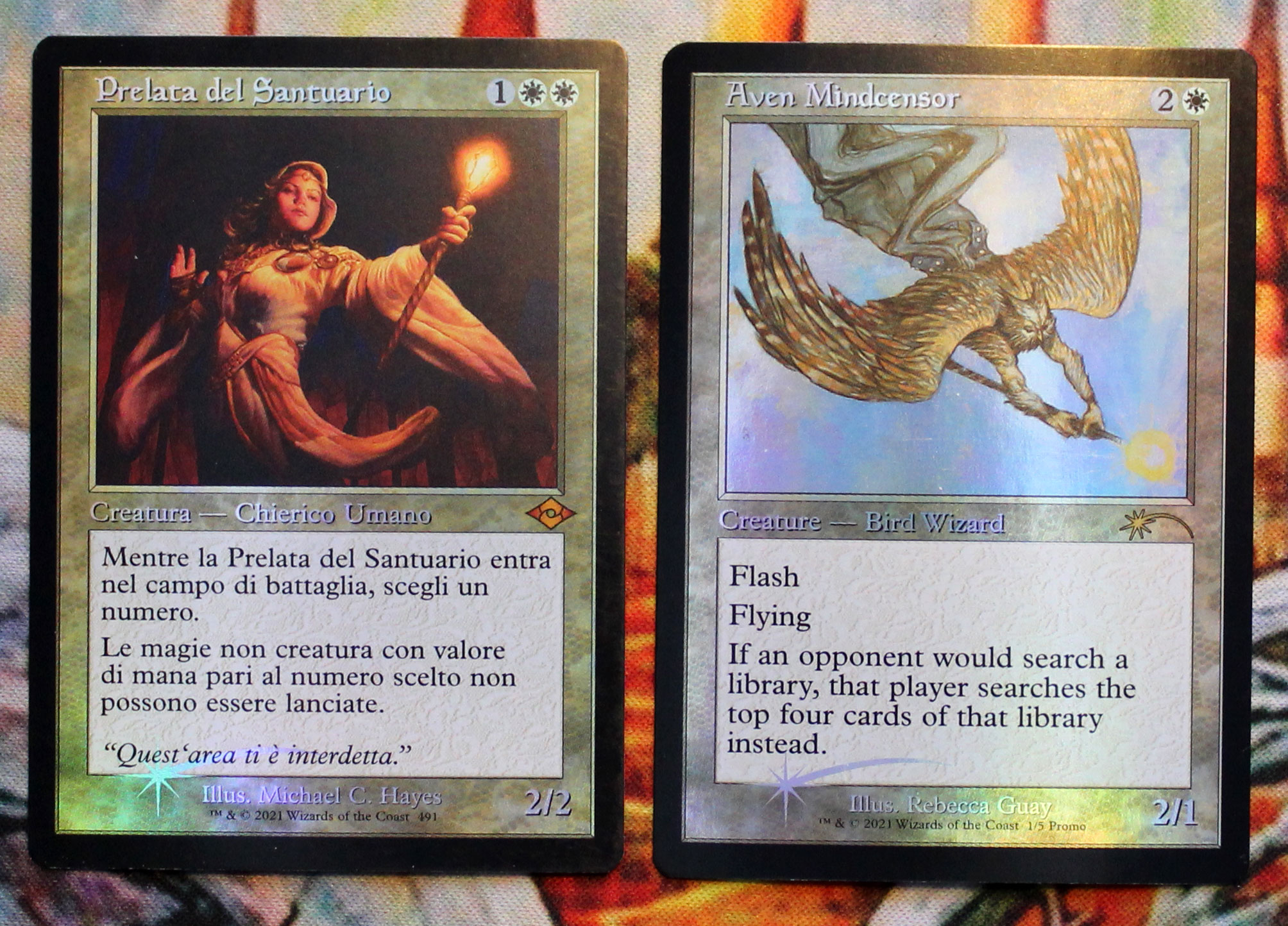 Лот для ЕДХ-стаксоводов, промочные фойловые Aven Mindcensor и итальянский Sanctum Prelate в старом бордере. Карты новые, не игрались, хранились в протекторах.