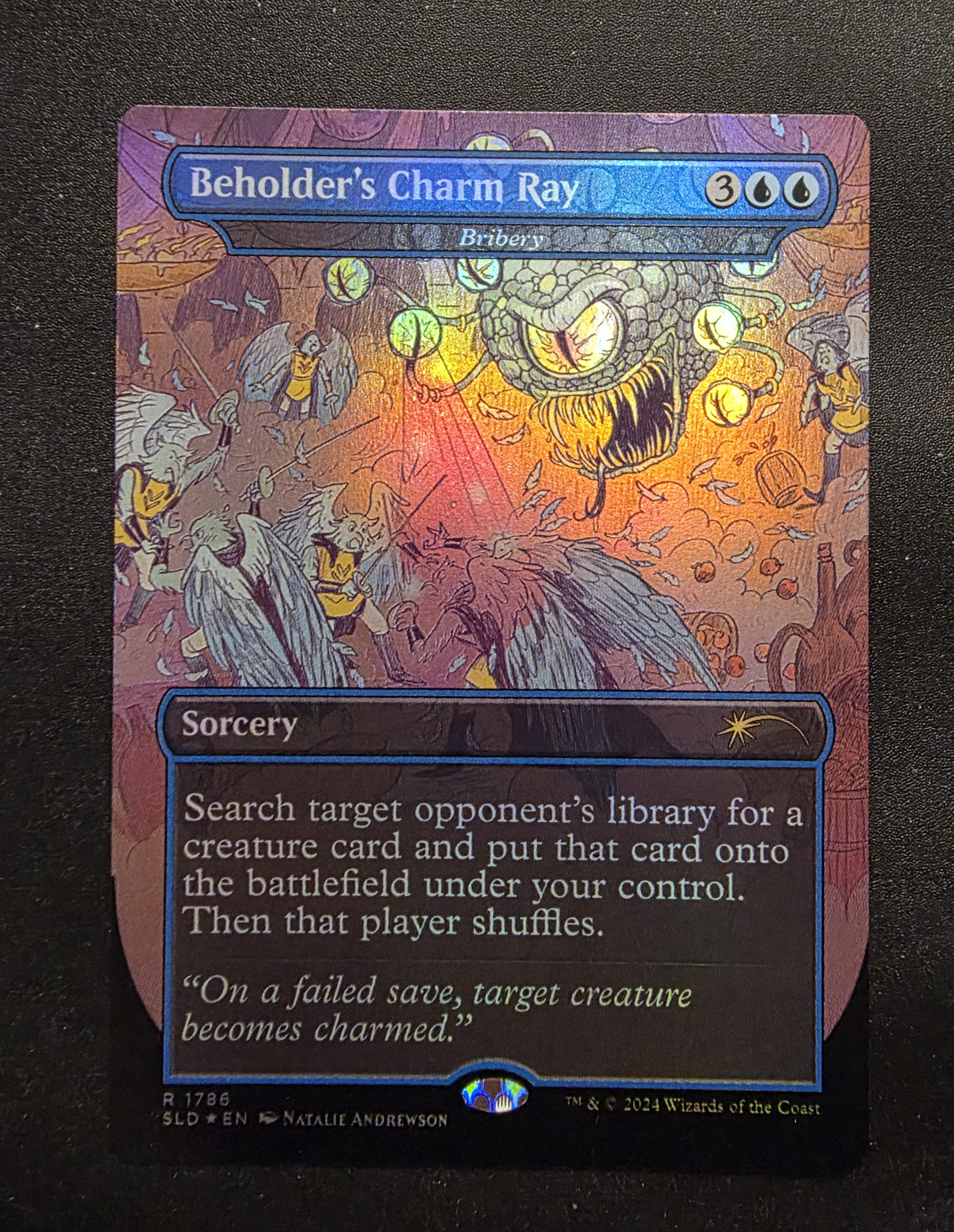 Фойловая карта Bribery с уникальным безрамочным артом из набора Secret Lair: Death is In the Eyes of the Beholder I. Карта в отличном состоянии.