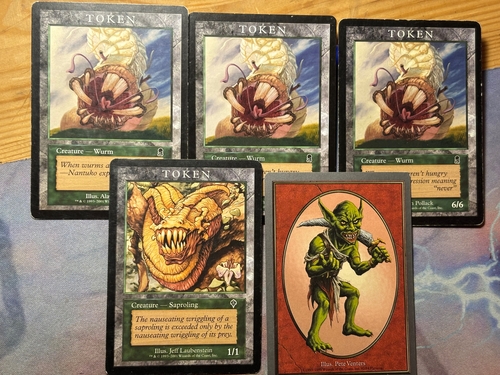 Токены Wurm 6/6, Saproling и Goblin . Вурмы в состоянии SP/MP, Сапролинг и Гоблин в NM/SP. за доп фото - в личку