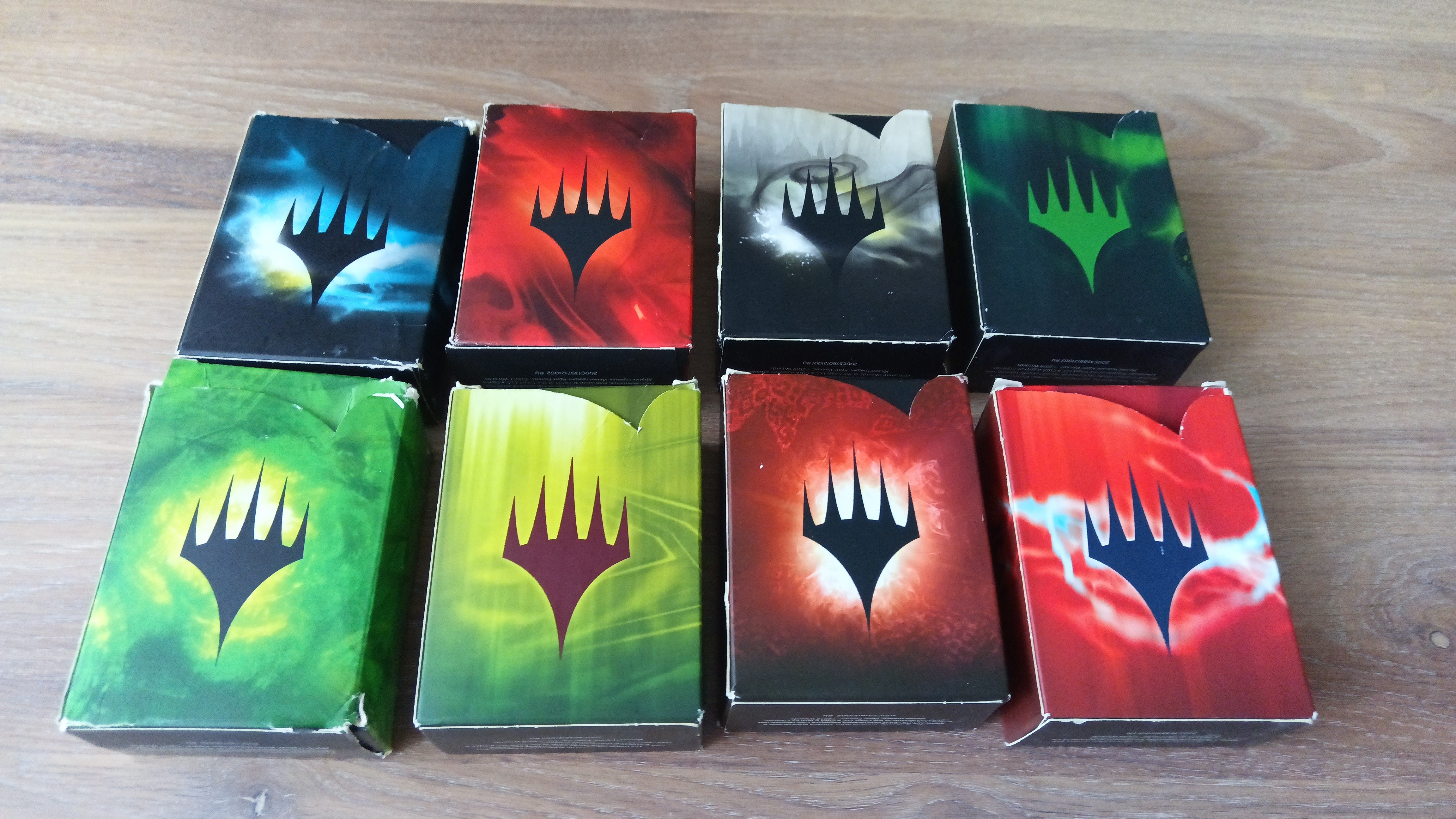 Покупались несколько лет назад для обучения MTG детей в плюс-минус таком же состоянии, т.е. без плейнсов, с недостачей карт и пр. Дети выросли, колоды не нужны, колоды занимают место.