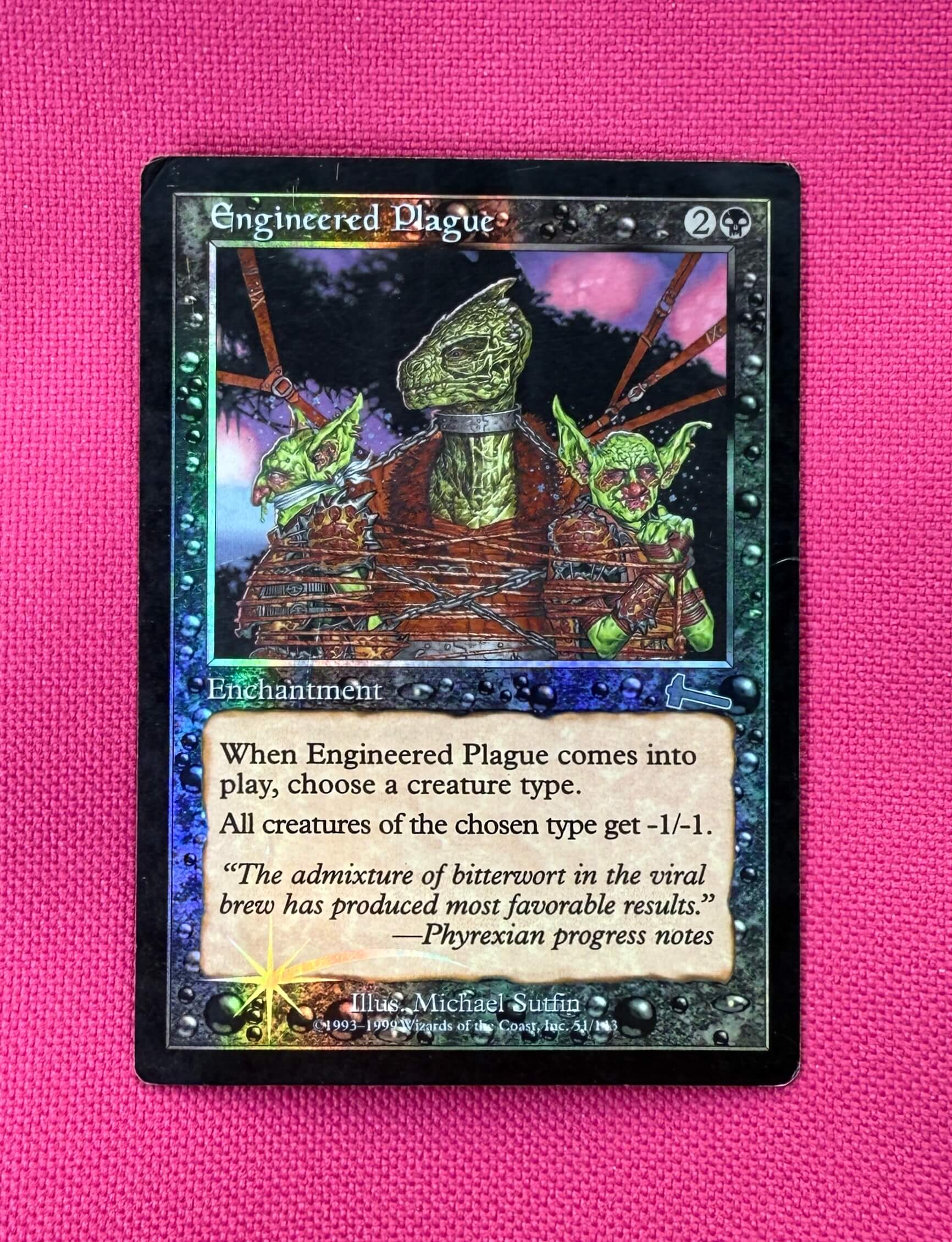 Ретро фойловенькая Инженерная Плага из самого первого издания. Карта на английском языке. Состояние заметно поигранное (по центру имеется видимый залом игрового характера и небольшой загиб верхнего левого угла заметный на рубашке), ниже ссылка на доп. фотографии: