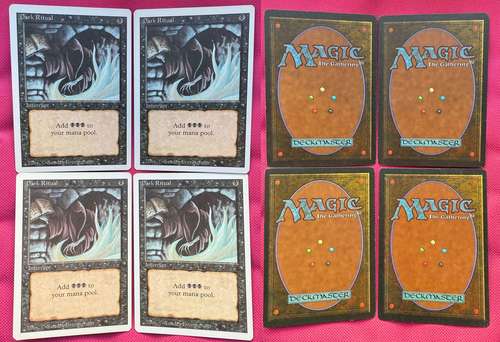 Игровой ретро комплект Дарк Ритуалов из трёшки на английском языке. Состояние коллекционное, брались в колоду, но в итоге не использовались (белые бортики карт абсолютно чистые). Будем считать немного поигранными, картам более 30 лет.