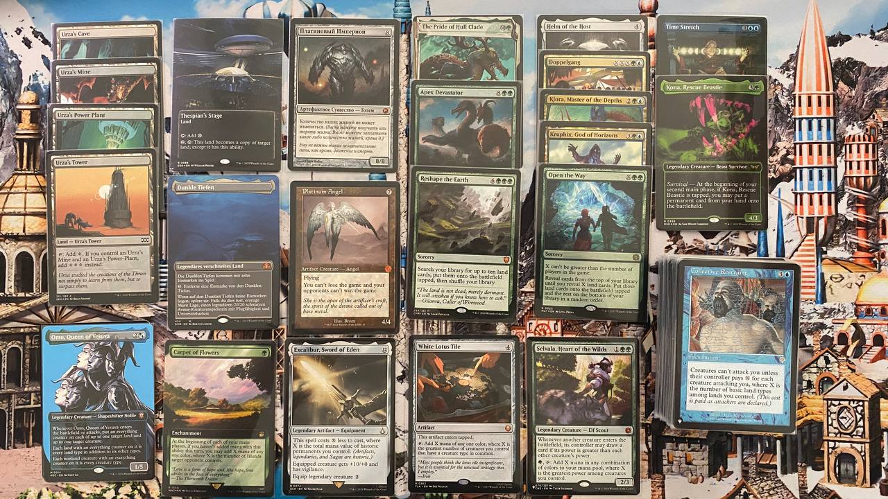 Готовая для игры колода. Карты в основном на русском и английском языках в состоянии SP и выше, базовые земли из разных сетов, фойление и арты можно посмотреть по ссылке https://moxfield.com/decks/6syodQSkD0-TfJfkWX2AEA
