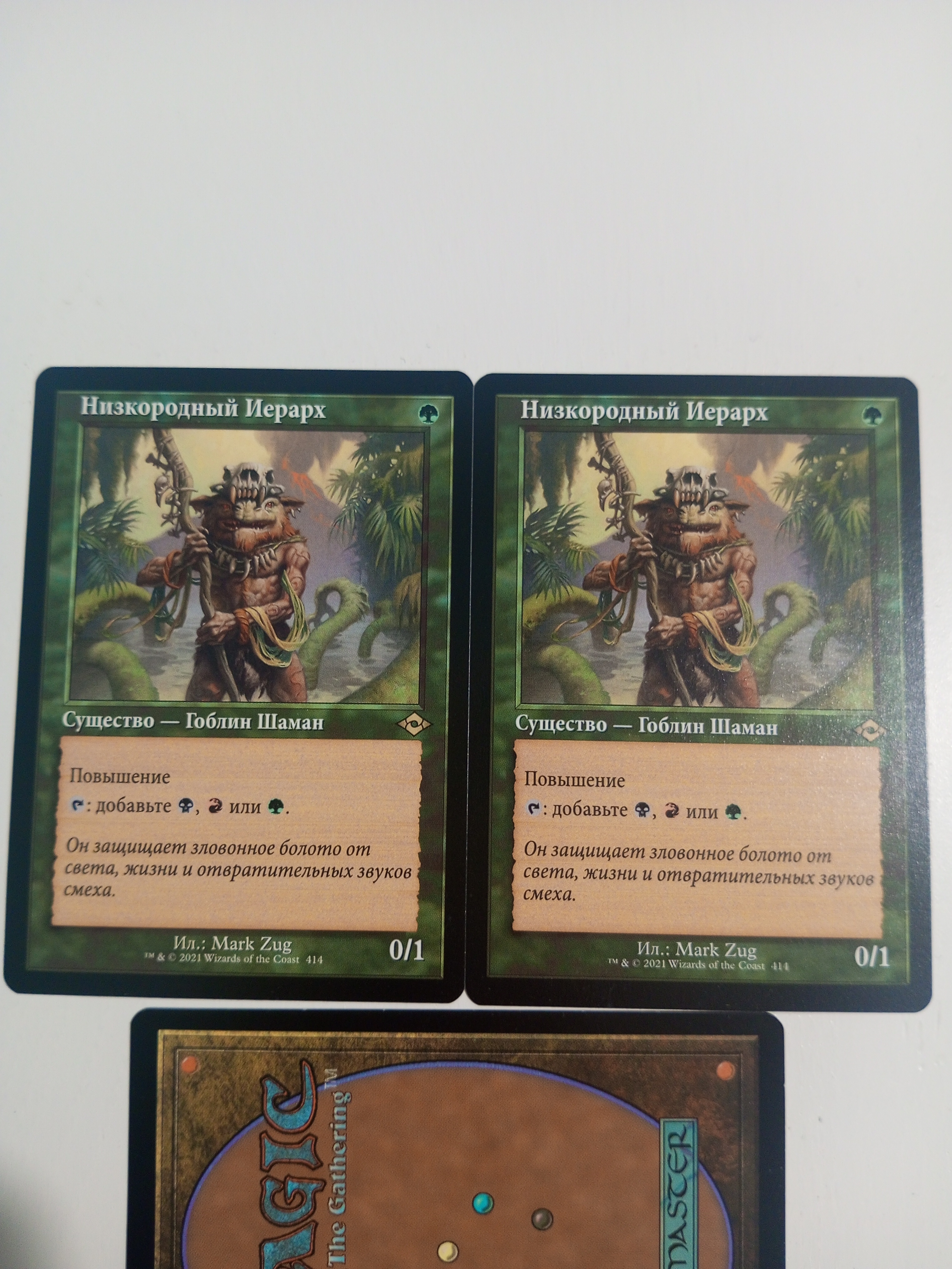 2*Низкородный Иерарх (Ignoble Hierarch (OLD-FRAME)) #414 [Modern Horizons 2 Russian]. На одной карте есть пару точек (вмятинки) в протектора не заметно