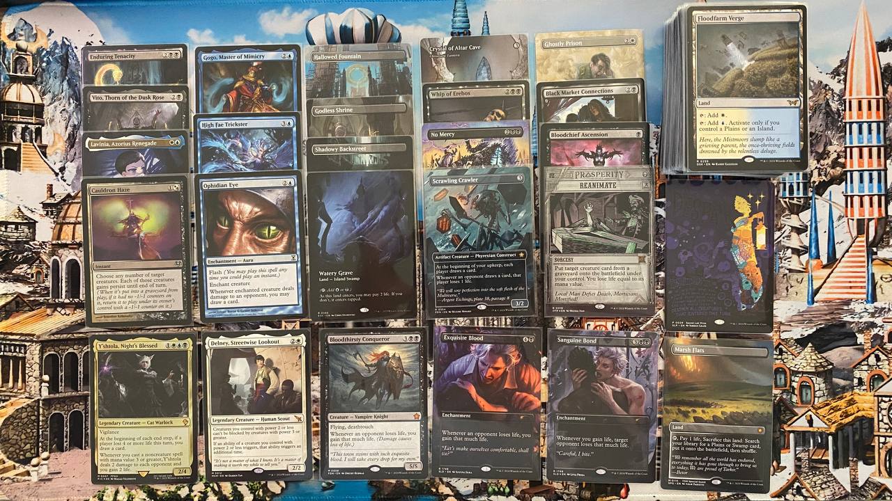 Готовая для игры колода. Карты в основном на русском и английском языках в состоянии SP и выше, базовые земли из разных сетов, фойление и арты можно посмотреть по ссылке https://moxfield.com/decks/H7veRa-M_0KJKyfMZArb7g