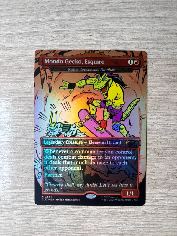 Kediss, Emberclaw Familiar as “Mondo Gecko, Esquire” (Secret Lair x Teenage Mutant Ninja Turtles: The Mighty Mutanimals, SLD #2364) FOIL