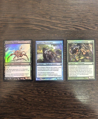 Ползучая зараза RU Foil (MOR, #62), Мерроу-мыслестрел RU Foil (MOR, #40), Патрульные отсеиватели RU Foil (MOR, #139).