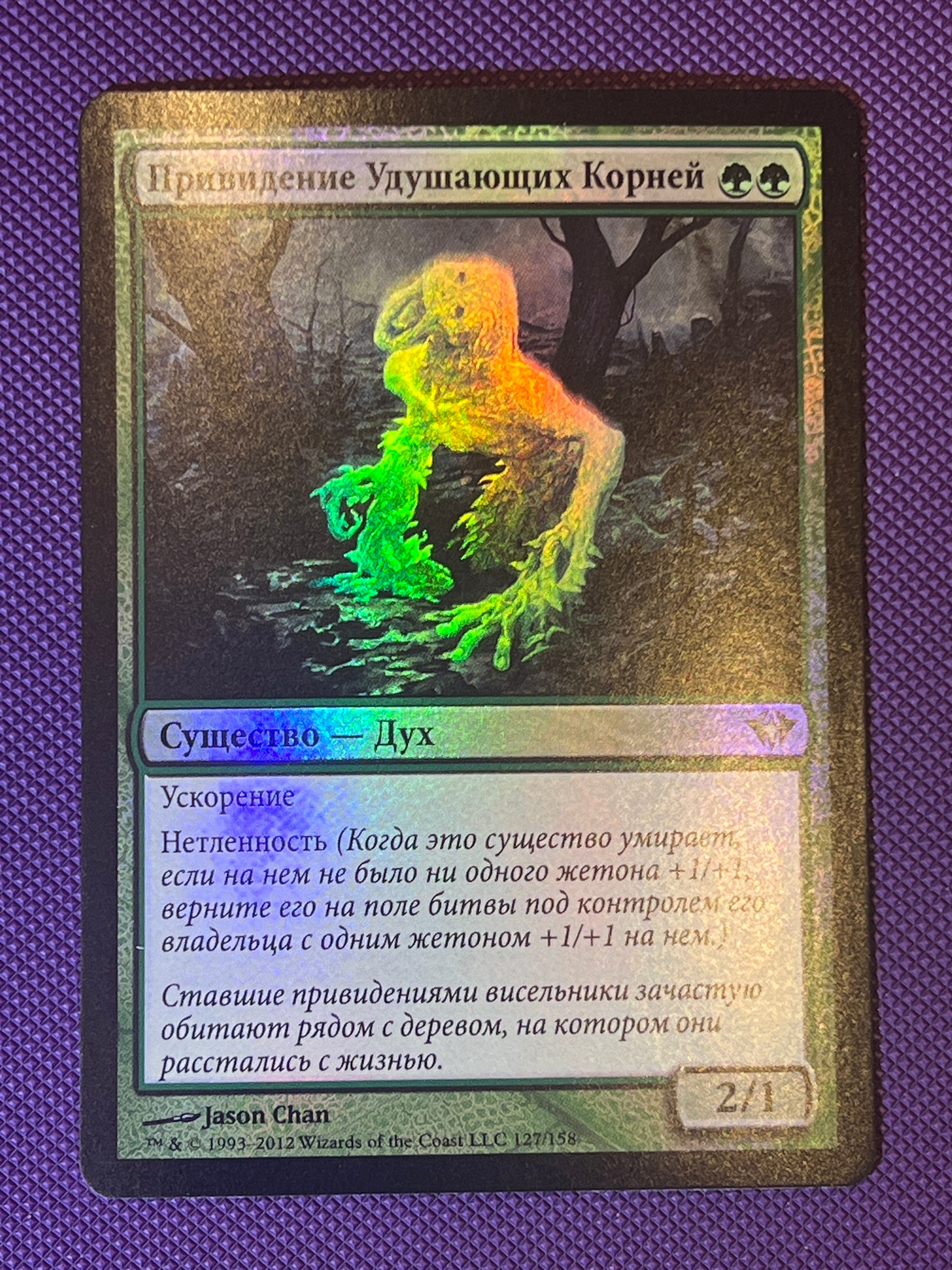 Крайне раздражающий для оппонента дух, который становится только сильнее после того как умирает. Состояние отличное, готов залезть в деку или коллекционный альбом.