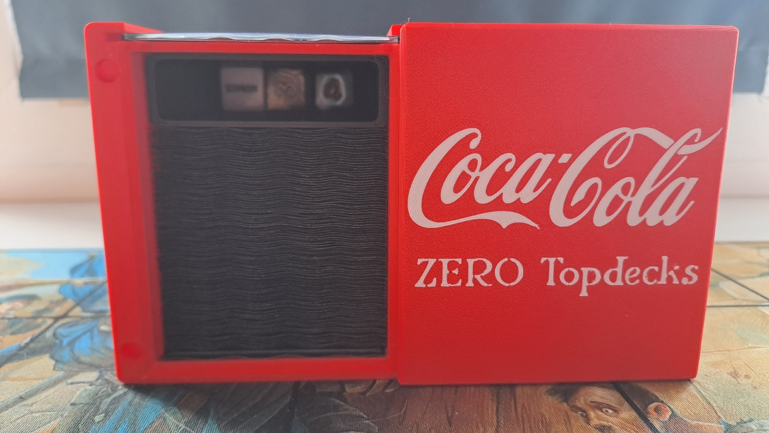 - Внизу крышки слоты чтобы модно держать кубики и деккипера / генерала на столе.