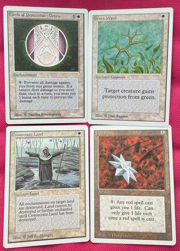 Три древних анкоммона и один коммон в хорошем коллекционном состоянии. Картами никогда не играли, долгое время находились в сетах. Ссылка на фотографию рубашек: https://disk.yandex.ru/i/jY48-UY4mQIyLw