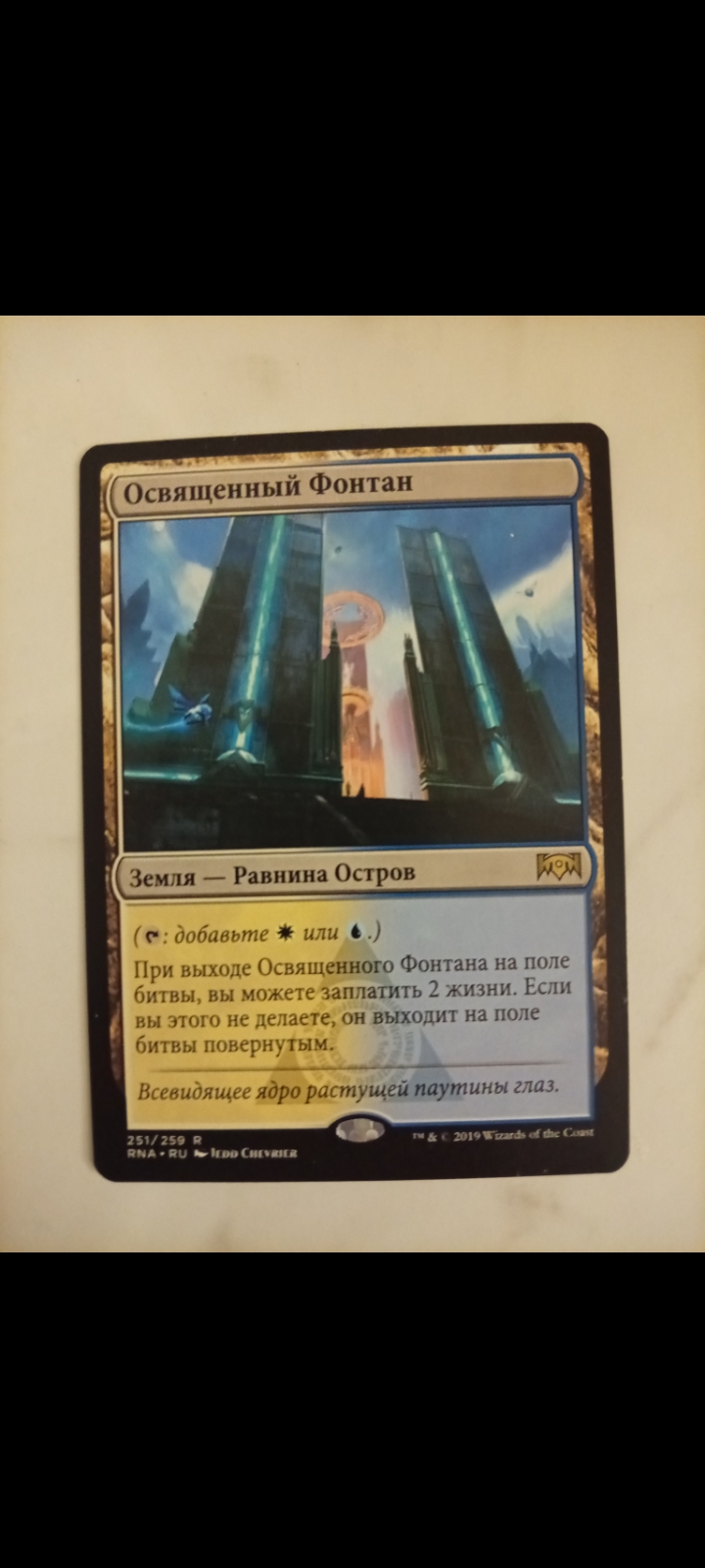 Продам Освященный Фонтан из Ravnica Allegiance. Карта попала из бустера в альбом и не видела ни одной партии.