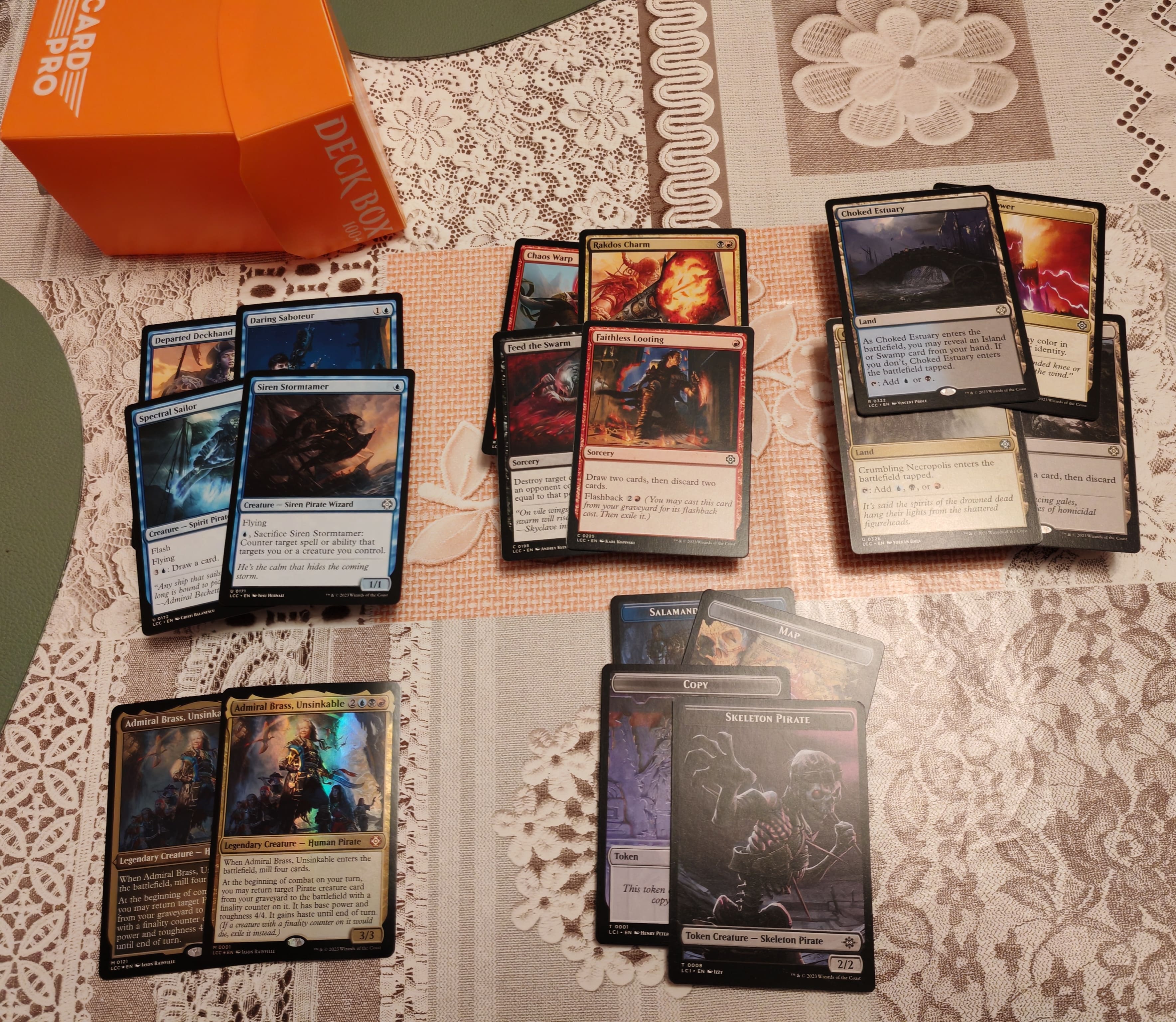 Прекон Ahoy Mateys (UBR пираты, The Lost Caverns of Ixalan) в отличном состоянии (игрался один раз в двойных протекторах).
