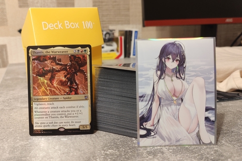 Представляю вашему вниманию колоду в командир. В комплекте идёт Б/У бокс на 100+ карт и новые протекторы. Карты на английском и русском языках за небольшим исключением (есть пара базиков на китайском)