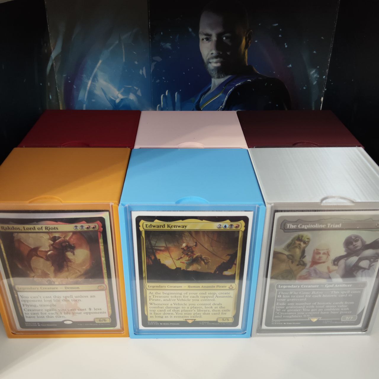 В комплект входит топлоадер для демонстрации командира/цветовой принадлежности колоды, а также он служит крышкой.