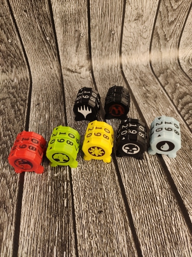 Счетчик жизней перещелкивающийся. Имеются разные варианты с 5 символами маны, символом плэйнсволкера и лого магии.
