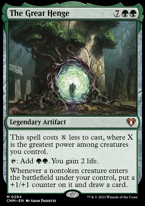 Положил the Great Henge в мэйн 1шт только потому что это стабильный отхил против агры/рыцарей/джанда, которого зачастую не хватает. В качестве виш борда он не так хорош, потому что нет времени искать его феей и ставить + чаще ищутся ответы типа flame sweep.