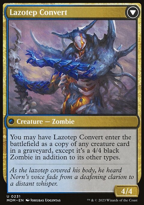 Miro Опубликовано: 24 октября 2023 Автор Поделиться Опубликовано: 24 октября 2023 53 минуты назад, Григор Казарян сказал: оно ещё и в стандарте с Invasion of Amonkhet Lazotep Convert эффективно синергирует 1 Наверх Ссылка на комментарий Поделиться на других сайтах More sharing options...