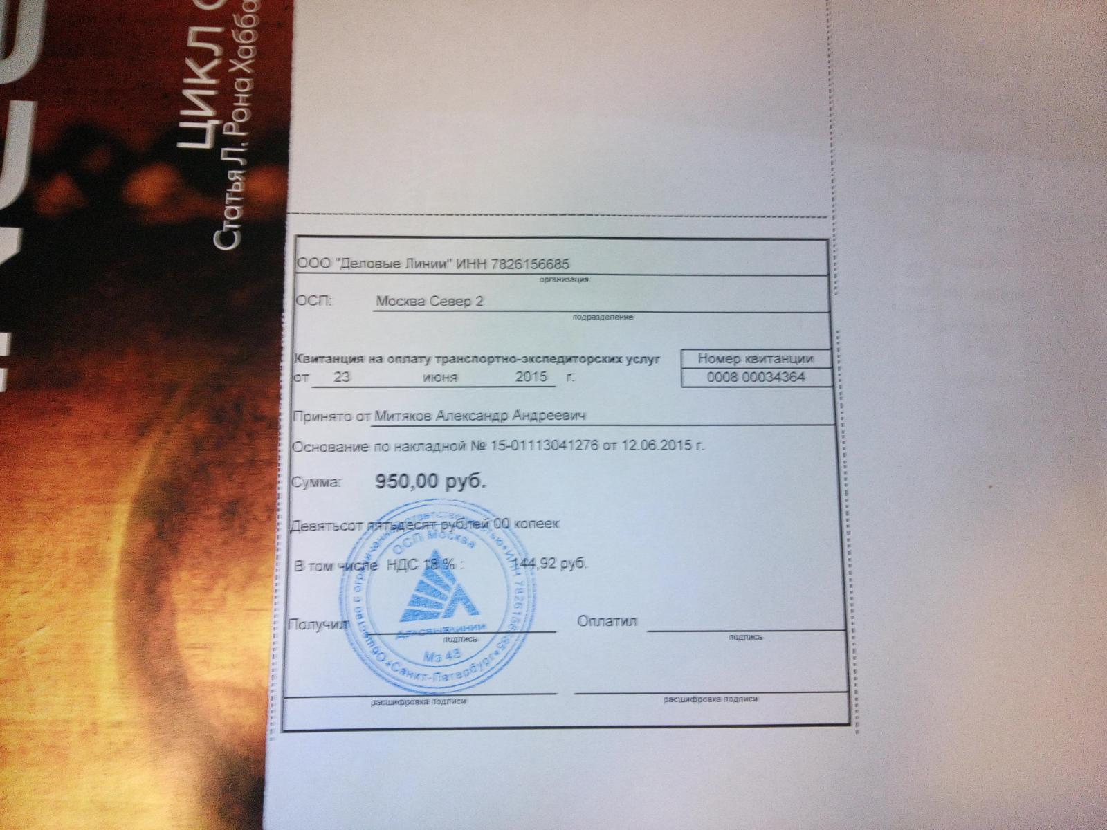 Информация о фотографии счет за доставку